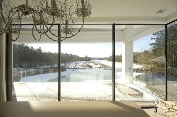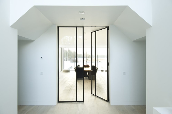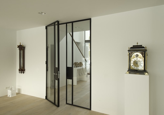 Binnen zijn diverse deuren en puien met het smalle (30mm) stalen SL30 profielsysteem geplaatst.
