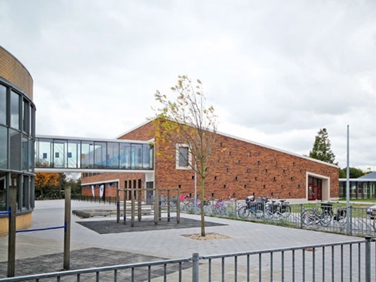 Een bijzondere situatie bij de Brede School in Wateringen is dat het nieuwe gebouw een verbinding moest leggen met twee bestaande schoolgebouwen. Daarbij hebben wij bewust de keuze gemaakt om een van de corridors als brug uit te voeren. Onze visie over de inrichting van de buitenruimtes, de vluchtmogelijkheden en de meerwaarde van een goede bereikbaarheid van de DansCreatie, is door de gemeente Westland onderschreven. De gemeente heeft deze visie gehonoreerd door buiten de normeringen extra budget vrij te maken voor deze voorziening.