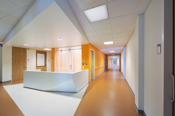 Één centrum met verwante disciplines en verschillende patiëntengroepen. In het interieur is dit zichtbaar gemaakt door gebruik van een groot spectrum van kleuren en dessins. Gebaseerd op het nieuwe logo heeft ieder specialisme een eigen kernkleur/ dessin gekregen gecombineerd met verschillende steunkleuren. Hierdoor krijgt iedere ruimte, hoewel gelijk in vorm en functie, een eigen identiteit zonder zijn herkenbaarheid te verliezen.
