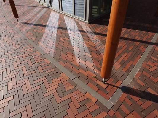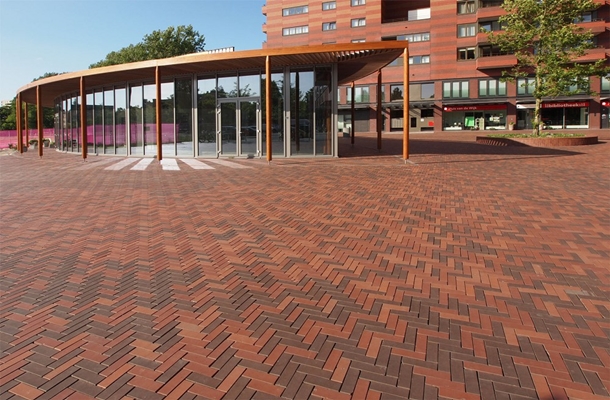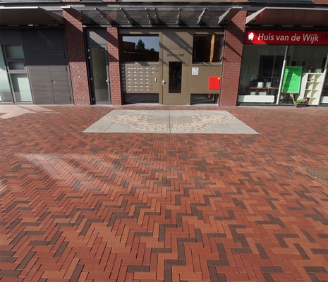 Uit dat ontwerpidee ontstond een plein met virtuele 'voetgangersstromen' die Aluvihare uitwerkte in subtiele kleurnuances in de bestrating, aan de hand van drie paletten van Hagemeister steensorteringen en met een herkenbare mix van stenen per zone, machinaal verlegd in verschillende klinkerverbanden.