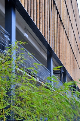 Om de beleving van een massief, hoog gebouw weg te nemen, is de onderste verdieping van de garage omgeven door levende bamboestruiken. De bladeren hangen binnen reikwijdte van passanten. De bovenliggende gevel is rondom afgewerkt met bamboepalen; omdat dit pas op de tweede verdieping begint, lijkt het gebouw te zweven. Als je erlangs loopt krijgt de gevel extra dynamiek door het waaierende patroon waarin de palen staan. Afhankelijk van de kijkhoek lijkt de gevel open of gesloten.