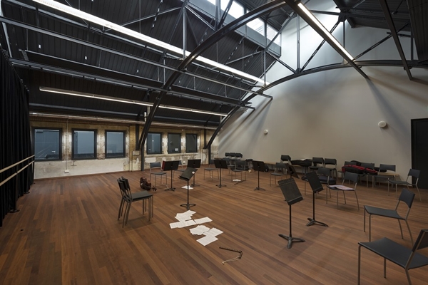 De kleinste hallen in het oudste deel, die voorheen helemaal volgebouwd waren, zijn weer gestript tot lege hallen. In één ervan zit de muziekzaal, in de andere het cultuurcafé. Beide ruimten zijn slim te schakelen tot een grote zaal voor evenementen en festivals. In het middendeel zijn de cursusruimten en, onder de spantconstructie, een balletstudio’s en een theaterzaal gerealiseerd.