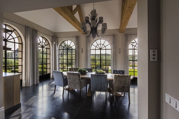 MHB heeft voor dit woonhuis getoogde ramen en deuren in het stalen Classic-ISO® geproduceerd, beglaasd en gemonteerd. Mede door de toepassing van deze profielserie wordt de klassieke uitstraling versterkt.