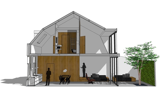 Verbouwing arbeiderswoning tot 'pied a terre'