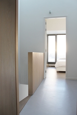 Om zoveel mogelijk ruimte te creëren is de woning volledig gestript van alle binnenwanden en is een eikenhouten meubel ontworpen waarin verschillende functies zijn geïntegreerd en verborgen voor het oog. Het meubel heeft op de begane grond zowel een entrée, toilet, wasmachine kast, trap en bank in zich, waardoor veel ruimte wordt bespaart en tegelijkertijd als een prominent los element in de woning staat. Het meubel loopt van beneden door naar de 1e verdieping waar de badkamer en de twee slaapkamers zich bevinden.
