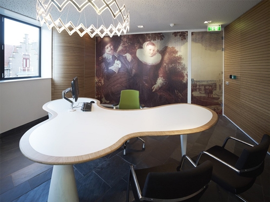Op de verdiepingen liggen de werkplekken, gebaseerd op een flexibel kantoorconcept met gevarieerde maatwerkplekken. Het werken geschiedt niet meer op individuele, vaste werkplekken, maar op activiteitgerelateerde flexibele werkplekken. De inrichting van het stadskantoor is ontworpen aan de hand van activiteiten, zoals vergaderen, geconcentreerd werken, samenwerken, ontmoeten, kennisdelen en ontspannen. Hierdoor ontstaat een combinatie van meer klassieke kantoren, open werkplekken, vergaderplekken en ontmoetingsruimten. Centraal op elke verdieping is een ontmoetingruimte met twee markante objecten: een pantry en een zitmeubel. Aansluitend hieraan ligt de huiskamer van de afdeling.