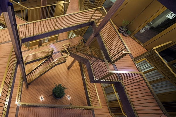 Uitgevoerd in ALUCOBOND® metallic colours Gold Metallic . De architecten hebben gekozen voor een custom colour om de ontwerpgedachte die ze hadden precies zo uit te voeren als vantevoren bedacht. In het kloeke bouwblok, uitgevoerd in een metselwerkjas, is met hout en aluminium een volledig eigen binnenwereld gecreërd. Vriendelijk, speels en warm. Het traditionel bouwblok in een moderne uitvoering.