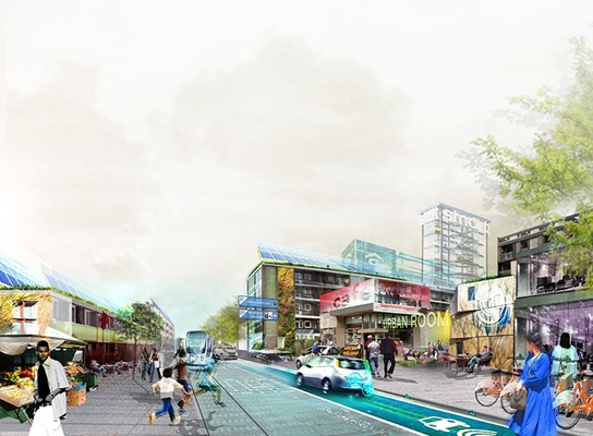 Wanneer de negatieve aspecten van mobiliteit vervallen ontstaat er ruimte voor een totale stedelijke reorganisatie. Het biedt kansen om grote verkeersaders opnieuw te dimensioneren en prikkelt tot een nieuwe visie op parkeren, functiemenging en onze energie infrastructuur. Met de studie ‘E-City’ inspireert OKRA politici, planologen en stedenbouwkundigen tot nieuwe stedelijke ontwikkelingsstrategieën waarbij schone mobiliteit het vertrekpunt is.