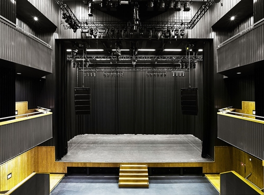 In het interieur komen dezelfde materialen terug: staal, (bak-)steen en hout. De entree en foyer in het oude fabriekspand worden gedomineerd door de ruwe oude bakstenen gevels en karaktervolle houten spanten. De nieuw toegevoegde elementen bestaan uit dezelfde materialen, maar dan strakker en meer gepolijst. Een grote centrale trappartij dient als tribune voor kleinschalige akoestische optredens, waardoor de foyer een podium wordt.