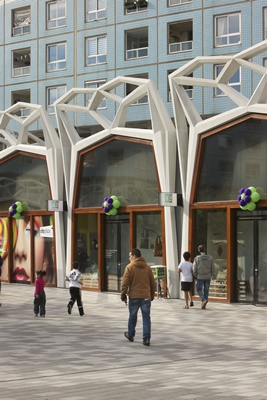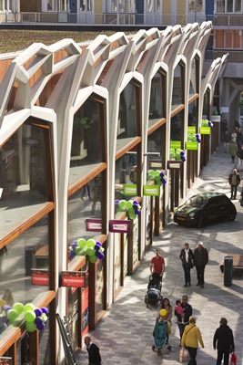 Dok architecten maakte niet alleen het ontwerp voor de markt, de winkels, de woningen en de hoofdwinkelstraat maar werkte het geheel ook bouwkundig uit. Het programma is een eigentijdse functiemix van een commercieel aanbod in de plint en een woningen daarboven. Samen zorgt dat, ook na sluitingstijd van de winkels, voor een levendige sfeer in het stadshart.