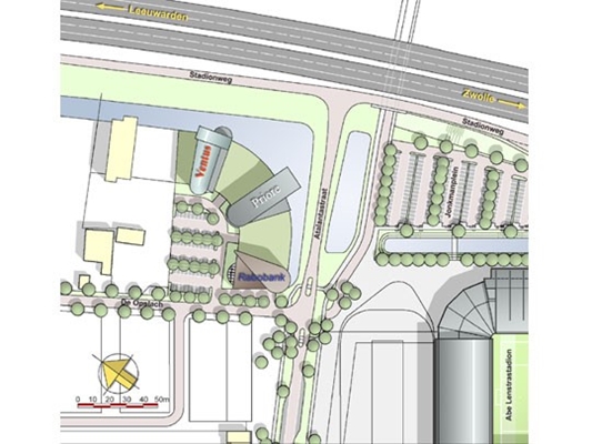 Het ensemble van de drie kantoorgebouwen Ventus, Priore en Rabobank, is gesitueerd aan de noordkant van Sportstad Heerenveen. De drie gebouwen zijn als individuele expressies ontworpen, maar staan op een gezamenlijk, groene plint waaronder een deel van het parkeren gesitueerd is. De gebouwen kennen een variatie aan materialen, met een gemeenschappelijke, donkere kleurstelling. Het project is gebouwd met gebruik van diverse duurzame methoden en technieken en heeft als eerste project in Friesland een 'Groenfinanciering' ontvangen. O.a. is het gebouw 30% energiezuiniger dan de eisen van bouwbesluit, wordt alleen duurzaam hout toegepast, zijn waterbesparende maatregelen genomen en is gebruik gemaakt van duurzame energiebronnen.