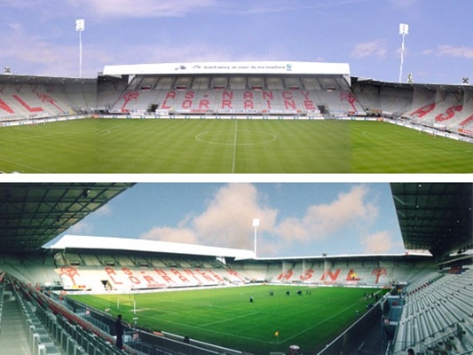 De opdracht voor de gefaseerde vernieuwing van een voetbalstadion in de stadswijk Tomblaine van Nancy is verkregen via een Europese prijsvraag. Het stadion is de thuisbasis van de Franse eredivisieclub ASNL. Drie van de vier verouderde tribunes worden vervangen en aangevuld met hoektribunes. De bestaande Oosttribune wordt onderaan verlengd met zeven rijen die aansluiten op de nieuwbouw. Een nieuwe hoofdtribune vormt de ‘voorgevel' aan de Rue Jeans Jaures, een belangrijke verkeersader in de stadswijk. De geperforeerde staalplaat als gevel achter de tribunes en het vele glas in de voorgevel verlenen het ontwerp transparantie. Dit doorbreekt het kolossale en gesloten karakter dat stadions eigen is.