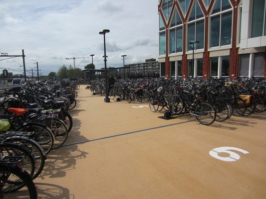 Oriëntatie is volgens Fredriks ook belangrijk. 'Er wordt rekening gehouden met het gedrag van de fietser. 'Die heeft altijd haast. Haast om de trein te halen of om weer naar huis te gaan. Daarom wordt gewerkt met verschillende kleurstellingen en worden paden met een bepaalde kleur geaccentueerd. Zodat je je fiets sneller terugvindt.'
