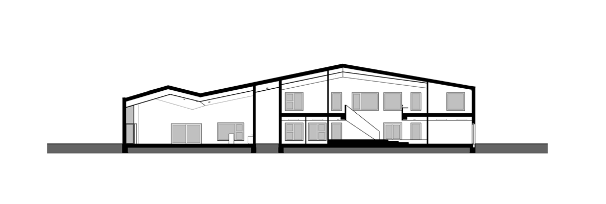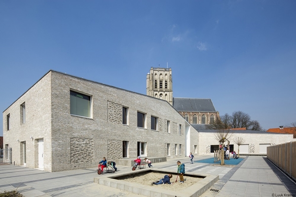 Het nieuwe gebouw is afgestemd op de specifieke situatie van beschermd stadsgezicht. In de Brielse binnenstad zijn schuine daken verplicht. Atelier PRO heeft dit gegeven aangegrepen om met een bijzondere kapvorm het volume op te laten lopen; van één verdieping bij de aansluiting op het gemeentelijk monument naar twee verdiepingen voor de vervangende nieuwbouw. Hierdoor is ook automatisch extra hoogte ontstaan ter plaatse van de gezamenlijke aula en speellokaal.