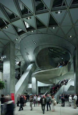 Het "House of Music" in Aalborg, Denemarken, is ontworpen door de architectenstudio Coop Himmelb(l)au uit Wenen en moet zowel een school als een concerthal zijn: de open structuur moedigt de interactie aan tussen publiek en artiesten en tussen leerlingen en leerkrachten. "Het idee achter het gebouw is al te zien aan de buitenvorm. De school omhelst de concerthal", vertelt Wolf D. Prix, hoofd ontwerp en CEO van Coop Himmelb(l)au. Oefen- en opleidingslokalen in u-vorm liggen rond de kern van het geheel, een concerthal voor ongeveer 1.300 bezoekers. Een ruime foyer verbindt deze ruimtes en geeft met een multifunctioneel raam uit op een aanpalende culturele ruimte en een fjord. Onder de foyer vullen drie extra kamers van diverse afmetingen de ruimte aan: de intieme hal, de ritmische hal en de klassieke hal.