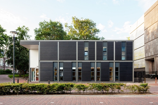 Het gebouw staat op een architectonische hotspot in Amersfoort, naast het trafostation van Ben van Berkel en tegenover de huisvesting van de Rijksdienst voor Cultureel Erfgoed. De heldere ritmiek in de gevels is een uitdrukking van het gebouwmoduul maar legt ook een verband met het trafostation. De gesloten gevel met zwarte planken wordt aangevuld met een licht en uitnodigend accent bij de entree.
