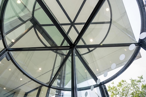 Voor OeverZaaijer was het belangrijk om een markante entree te realiseren bij 1000 Mahlerlaan. Vooral de hoge glazen cilinder op de