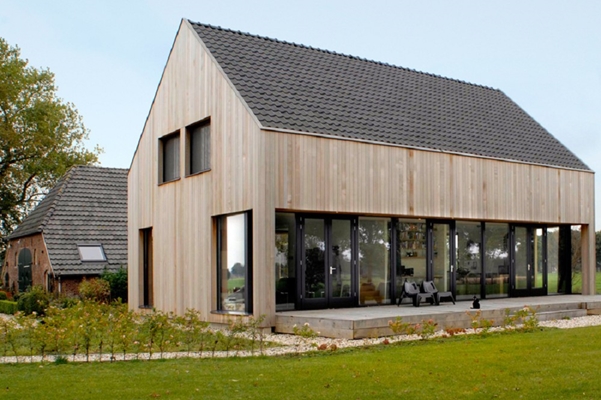 Maak van de schuur op ons erf een fijne woonruimte voor ons gezin. Omdat de schuur te slecht was om te verbouwen werd hij gesloopt. Op de plek en in de geest van de oude schuur hebben we een nieuwe woning ontworpen met dezelfde uiterlijke kenmerken: een stoere vorm opgetrokken in hout. De woonkamer loopt door in een verhoogd terras, hierdoor is er maximaal contact met buiten. Ramen zijn zo geplaatst dat er zichtlijnen zijn door het hele huis.