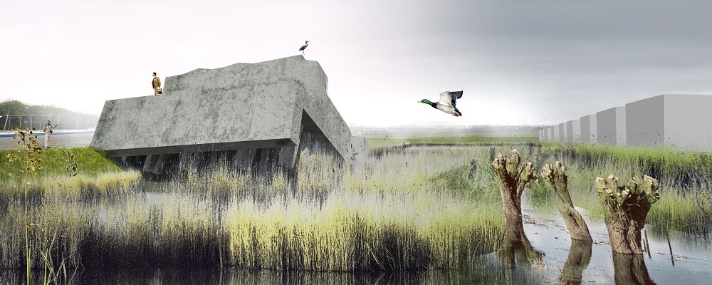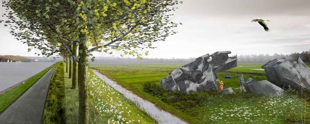 Vanwege de voorgestelde verbreding van het Lekkanaal kunnen de bestaande objecten die zich in het gebied bevinden niet op hun huidige locatie blijven liggen. Een levensgroot dilemma, omdat het verwijderen van de objecten een grote aanslag op de NHW als geheel vormt. Het ‘letterlijk’ verplaatsen van deze objecten is geen optie aangezien dit in strijd is met de authenticiteit van de NHW. Uiteindelijk heeft Bureau B+B ervoor gekozen een leesbaar landschap te creëren waarbij zowel het oorspronkelijke verhaal als de wijzigingen duidelijk waarneembaar zijn. In de visie zijn de betonobjecten als het ware letterlijk opzij geworpen voor nieuwe economische ontwikkelingen. Deze zullen na verplaatsing zeer zorgvuldig als monumenten en ‘objets trouvés’ in het landschap langs en aan de nieuwe liniedijk worden geplaatst.