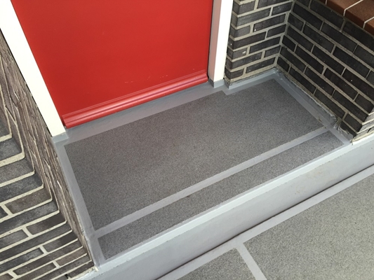 De galerijen zijn opgehoogd met Triflex BIS Aquapanel. Het systeem is speciaal ontwikkeld voor het ophogen van oppervlakken en biedt duurzame bescherming, isolatie en werkt brandvertragend. Het oppervlak werd afgewerkt met granucol in de kleur zwart.