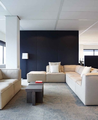 Onze collectie Urban Retreat paste perfect bij de gewenste natuurlijke uitstraling. De vloeren lijken op natuurlijke elementen zoals de zee en een bos. Het grillige patroon van de tegels gaf uiteindelijk de doorslag, aldus Erik Bots (project manager Delta Lloyd). Door de natuurlijke overgangen van de kleuren konden er gemakkelijk zones worden aangegeven zonder de rustige sfeer van het interieur te verliezen.