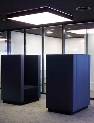 Ook aan duurzaamheid is gedacht. Zo zijn de vergaderstoelen hergebruikt door ze opnieuw te bekleden en zijn de tapijttegels gemaakt van 100% gerecycled garen.