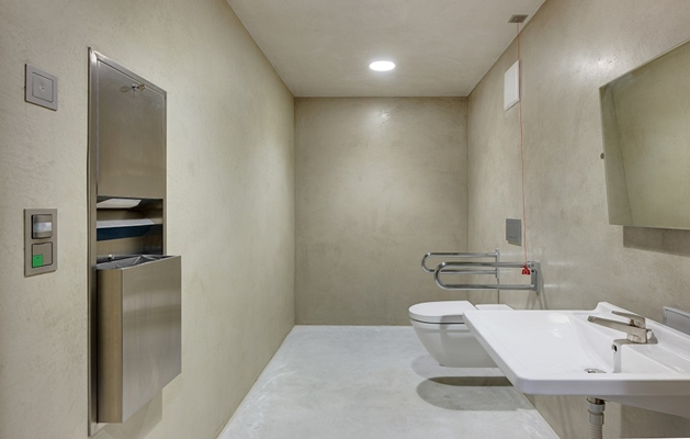 Bovendien werd ook het oproepsysteem uit het Gira schakelaarprogramma E22 in het mindervalidentoilet geïnstalleerd. Bij problemen kan via de draadloze Gira MiVa-set een hulpoproep verzonden worden, die op het touchpanel bij de kassa verschijnt. Bovendien brandt een rode signaallamp voor het desbetreffende toilet. Andere alarmmeldingen, zoals van de verwarming, ventilatie of aardlekbeveiliging worden eveneens weergegeven en ook buiten de openingstijden direct naar het elektrotechnische installatiebedrijf doorgestuurd. Zeer praktisch voor het personeel: Aan het einde van de dag kan het hele museum met slechts één klik compleet uitgeschakeld worden – de verlichting wordt overal gedeactiveerd en de beamer in de bioscoopzaal wordt uitgezet.