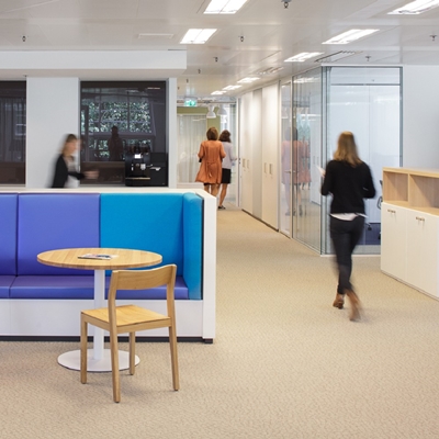 Een andere belangrijke ingreep in het casco zijn de doorbraken naar de verschillende vleugels van het gebouw. Zo zijn alle afdelingen zichtbaar als je door het gebouw loopt. Transparantie en het creëren van een prettige werkomgeving staan hier centraal. De afdelingen zijn door middel van kleur en materiaalgebruik duidelijk van elkaar te onderscheiden. Qua indeling is gezocht naar een zoveel mogelijk generieke opzet, zodat de werkomgeving flexibiliteit biedt naar de toekomst. Deze opzet is duurzaam en kostenefficiënt.