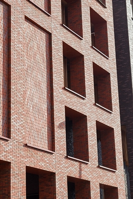 Holonite heeft in dit project bij kunnen dragen met standaard muurafdekkers en raamdorpels maar ook met speciaal voor dit project geproduceerde, gebogen muurafdekkers en raamdorpels. De maatwerk elementen sluiten exact aan op de vormen van het dynamische gebouw. Ook heeft Holonite het gebouw mogen voorzien van omkaderingen bij de lift en de trappenhuizen in de kleur Bruingrijs (23).