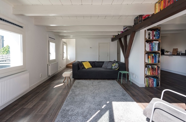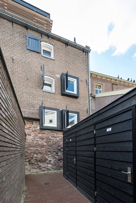 Aan de Bokkingshang in Deventer lag vroeger een binnenhaven met pakhuizen. Het water is weg, maar de gebouwen herinneren hier nog aan. Ze zijn gebouwd voor opslag van onder andere bokking, gezouten haring. Eén van deze pakhuizen hebben wij in opdracht van Wonen boven Winkels getransformeerd tot vier appartementen en een winkel/werkruimte. De entree van de winkelruimte bevindt zich aan de Bokkingshang. Voor de appartementen konden we een eigen entree met bergingen realiseren aan de achterzijde van het pand. Om voldoende daglicht in de woningen te realiseren hebben we moderne kozijnen toegevoegd aan de historische architectuur. Rechts naast het pakhuis lag een klein stukje grond. Op de begane grond is dit een extra ruimte van de winkel. Voor de appartementen konden we hierboven mooie royale balkons realiseren. Vanaf het bovenste balkon heb je uitzicht op de IJssel.