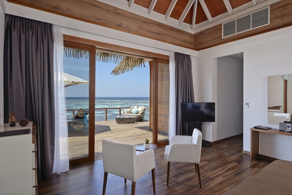Met een watervliegtuig bereiken de gasten het 150 x 200 meter kleine eiland – en landen in het paradijs. Het resort bestaat uit slechts 30 villa’s, die in vijf verschillende stijlen vormgegeven zijn. Daarbij zijn alle huisjes gebaseerd op de hedendaagse Maledivische architectuur met een modern interieur. Onderdeel van dit interieur is ook de elektrotechnische installatie, die is uitgevoerd met de tijdloze JUNG schakelaar LS 990. In zuiver alpine wit voegen de componenten zich feilloos in de lichtdoorlaten kamers in.