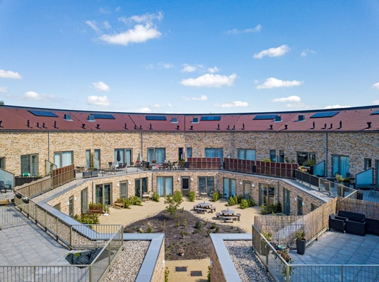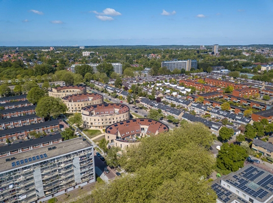 . Vier ellipsvormige woonblokken zijn rondom naar buiten geopend en omvatten elk een groen hofje met privétuinen. Ze vormen een sterke eenheid dankzij hun grote gelijkenissen en verkrijgen dynamiek dankzij diagonaal verspringende assen.