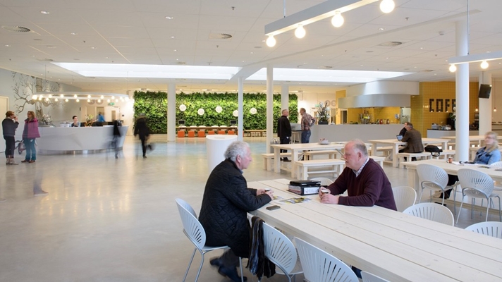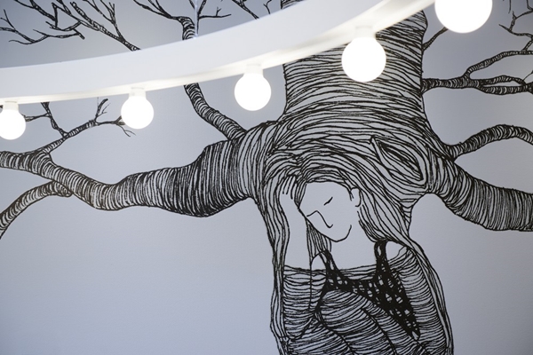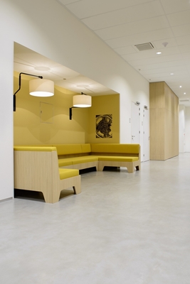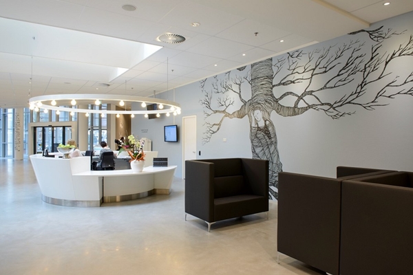 We hebben de vraag vertaald in een ontwerp, waarin variatie is in beleving van de ruimtes met zoveel mogelijk natuurlijke materialen en heldere kleuren: gastvrij, klantvriendelijk en modern. Speciaal voor dit interieur zijn er meer dan 100 illustraties ontwikkeld voor op wanden die laten zien wat er leeft in het gebouw. Ze vertellen het verhaal van de psyche van de mens en maken het gebouw persoonlijk.