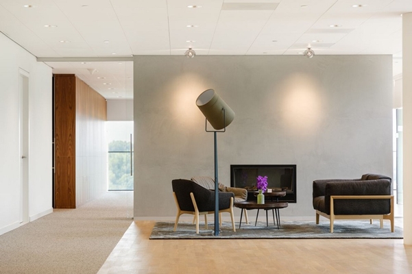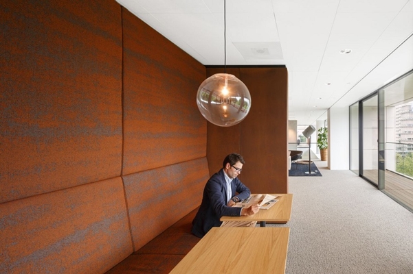 The new Egon Zehnder office in Amsterdam sets out to provide a comfortable and confidential experience to clients as well as consultants of the Executive Search and Talent Management consultancy firm. We have designed a contemporary villa-type environment with splendid views, in which space flows freely. The Corten steel reception area on the top level links easily to meeting rooms, dining room and roof terrace. Two spacious voids connect to a coffee lounge on top of a podium on the lower floor. From there, consultants’ private offices which offer appropriate discretion can be entered. As materialization is warm but subdued and detailing is robust, the entire office provides a sense of luxury without excess.