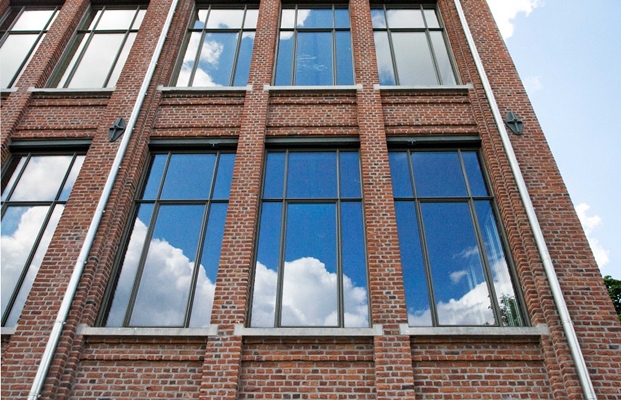 Voor de andere gevels opteerde men voor modern aluminium schrijnwerk. De slanke Ligna-profielen van Sapa Building System zijn visueel nauwelijks te onderscheiden van de oorspronkelijke stalen ramen waardoor het imposante architectuurbeeld intact blijft.