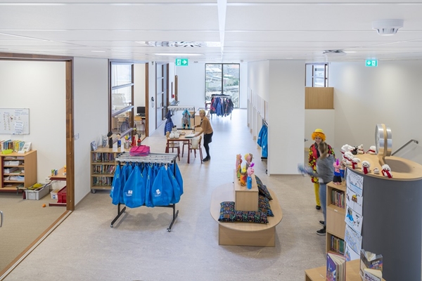 In het gloednieuwe gebouw van het Multifunctioneel Centrum (MFC) Oostburg in de Zeeuwse gemeente Sluis vinden twee basisscholen, een kinderdagverblijf en de GGD sinds 2015 onderdak. MFC Oostburg is ontworpen door Frencken Scholl Architecten. Huub Frencken koos daarbij voor Ecophon’s nieuwste oplossing, speciaal ontwikkeld voor ruimteakoestiek in het onderwijs: de Gedina A met Extra Bass.
