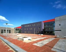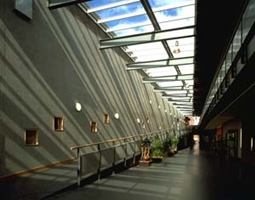 Ten noordwesten van deze wand bevinden zich het schoolplein, de aula en sporthallen, als transitie naar het groengebied aan die zijde. Het gebouw functioneert niet alleen als school en bibliotheek, door de vorm en de vloeiende overgang met de buitenwereld vormt het complex een baken in het landschap. Hierdoor wordt het landschap verrijkt door een object dat niet alleen gezien mag worden, maar ook intensief wordt benut.