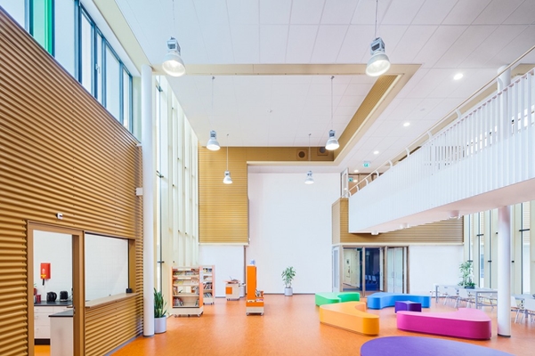De Brede School Kwintijn in Raalte komt voort uit een fusie van verschillende scholen en biedt onderdak aan 119 kinderen, een peuterspeelzaal voor twaalf tot veertien kinderen en twee gymzalen. Het onderwijs in het gloednieuwe gebouw is gebaseerd op een geheel nieuwe visie – waarin kinderen veel zelf doen en ‘leren-leren’ - die minder klassikale structuur met zich meebrengt. Onder meer daardoor was een centrale structuur met diverse functionaliteiten en plekken nodig waar veel kinderen samenwerken. Dat stelde specifieke eisen aan het ontwerp en de akoestiek. Daan Josee van Kristinsson, architect van het schoolgebouw, licht toe: “In het ruimtelijk concept zijn verschillende activiteiten en het profiel van de school samengebracht in zogeheten