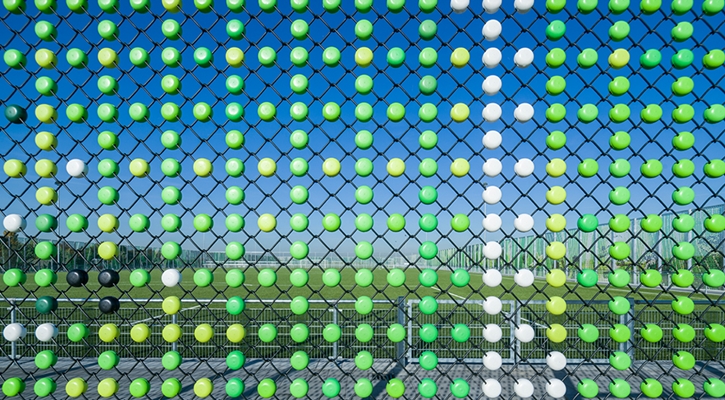 Rondom de velden is een scherm ontwikkeld dat niet alleen de veiligheid garandeert, maar ook de negatieve effecten van de wind wegneemt. De sportvelden – die zich op zes meter hoogte boven op de snelweg A4 bevinden – worden omheind door één van de allergrootste canvassen van Europa. De architecten creëerden samen met Lace Fence maar liefst 8.500 m2 aan kleurrijk hekwerk bestaande uit meer dan 1,6 miljoen levensechte ‘pixels’. Er is een functioneel kunstwerk ontstaan met een spannende combinatie van transparantie, luchtdoorlatendheid en verbeeldingskracht dat alles samenbrengt waar het project om draait: natuur, sport, verbinding en energie.