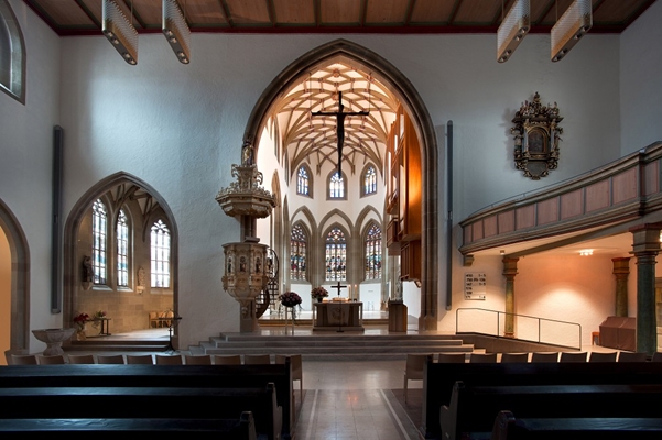 De evangelische stadskerk is een vers gerenoveerd juweel in het hart van de historische oude binnenstad van Schorndorf. De in 1511 gewijde kerk is de afgelopen jaren stap voor stap gerenoveerd en gerestaureerd. Eerst is de buitenkant met de klokkentoren onder handen genomen, daarna is ook de binnenkant van zijn kern ontdaan en met veel liefde voor detail weer opgebouwd. Nu schittert de kerk van top tot teen in nieuwe oude glans. Het gebruik van moderne gebouwentechniek verhoogt bovendien het comfort van het historische bouwwerk: Via een iPad kan de kosteres de klokken luiden, bijna 30 voorgeprogrammeerde lichtscènes oproepen en de verwarming regelen en programmeren. Een praktische automatische functie opent de tuimelramen om de temperatuur en luchtvochtigheid te reguleren.