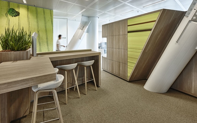 In april 2016 verhuisde HERE naar de nieuwe locatie in het centrum van Eindhoven; de Kennedytoren. M+R interior architecture ontwierp deze nieuwe innovatieve werkomgeving. HERE betrok de 5e t/m de 13e verdieping van het in totaal 22 verdiepingen tellende gebouw. Elke verdieping heeft een andere indeling gekregen als gevolg van de dominante stalen kolommenstructuur in het gebouw die per verdieping verschilt. Het ontwerp van de M+R is per verdieping voorzien van een thematische ontwerp en kleurconcept op basis van de kerntaak van HERE: navigatie. Het verdere interieur concept is gebaseerd op deze kerntaak: 'office mapping from world to desk'.