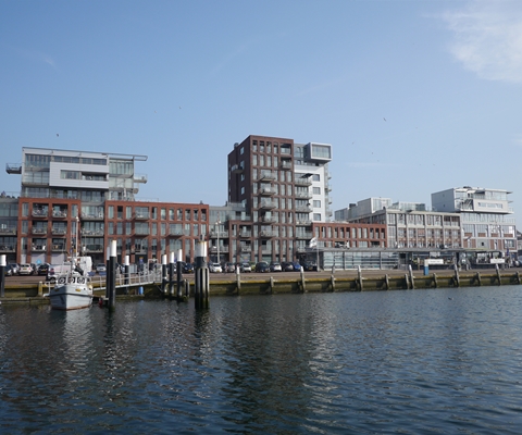 Daarna in 2004 kregen we van de Ontwikkelingscombinatie Scheveningen- Haven (een samenwerking tussen Rederij Groen en Volker Wessels de opdracht om een plan voor de rest van de Dr Lelykade te maken waarin het volume van nr. 46 zou worden opgenomen. Tegelijkertijd en onafhankelijk van ons, kreeg de ArchitektenKombinatie (Fred Bos en Dennis Hofman) de opdracht van ontwikkelaar Schoutenbouw om ook een studie voor de zelfde locatie aan de kade te maken. Beide ontwikkelaars bleken uiteindelijk de helft van de grond in eigendom te hebben en besloten toen tot een samenwerking.