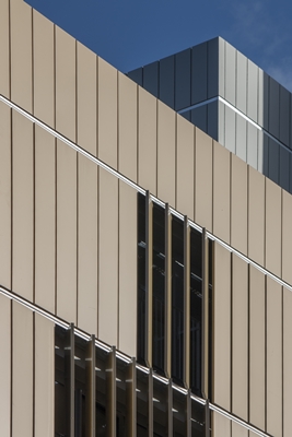 In Rue de Bercy a new mixed-use housing complex has been created, combining social housing and student accommodation. The former post office administration-building dates from the 70ies. Architect Jacques Audren recalls: “It was a massive vertical construction, hostile and brutal which made the street look sterile. We had to use precision surgery to dismantle it.” The building, set in the midst of the capital, now displays its modern gold metallic and anodized look ALUCOBOND