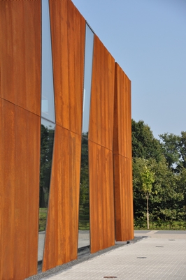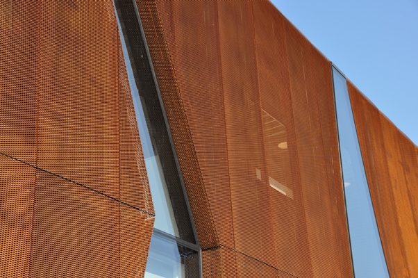 Eind maart 2014 is Mies Architectuur verhuisd naar een nieuw kantoor aan de Da Vincilaan 1 in Ede. We hebben een gebouw ontworpen van twee verdiepingen, met als basis een compact rechthoekig volume. Deze eenvoudige vorm is spannend gemaakt door daar sneden van glas in de maken. In contrast met het glas is de rest van de gevel bekleed met Corten strekmetaal. De materialen liggen in een vlak en vormen een strak volume. Ter plaatse van de entrees zijn de glazen vlakken meer naar binnen gelegd. Het strekmetaal hangt als een tweede huid om het gebouw, waardoor het strakke volume lichter en gelaagd wordt gemaakt.