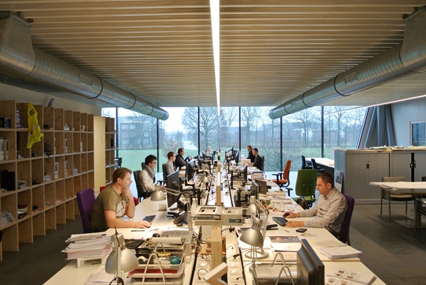 Ons kantoor is open, ruimtelijk en uitnodigend voor communicatie. Een ontmoetingsplek voor onze opdrachtgevers.