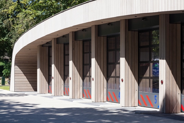 gebouw dat door ons is ontworpen voor de Regionale Ambulance Voorziening Utrecht (RAVU). De gebouwen delen een aantal kenmerkende familietrekjes. Ze hebben allemaal houten gevels en een gebogen dak. Voor dit gebouw is die lijn doorgetrokken met extra aandacht voor energiezuinigheid en het gebruik van natuurlijke materialen.