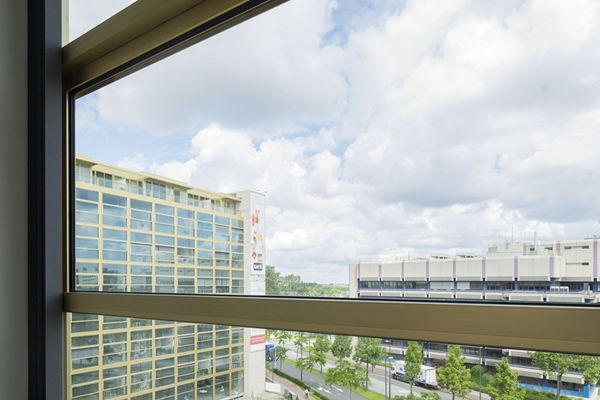 Wat de ramen in Philips Lighting bijzonder maakt, is de grote afmeting: 3,40 meter x 3.90 meter. De opvallende champagnekleur, grote afmeting, elektrische bediening en vingerbeveiliging leveren een belangrijke bijdrage aan de luxe uitstraling van de lofts.