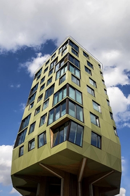 Het prijswinnende ontwerp van de Rundeskogen-torens in het Noorse Sandnes combineert innovatieve vormen en materialen en biedt bewoners een adembenemend uitzicht op de Noorse fjorden. De speelse façades zijn gerealiseerd met Trespa® Meteon® gevelpanelen.Het ontwerp van de Rundeskogen-torens is van architectenbureaus Helen & Hard en dRMM; een aansprekend voorbeeld van het gebruik van ruimte en hybride bouwstructuren. In een gebied met veel laagbouw zijn de woontorens een echte blikvanger, dankzij hun omvang en hoogte. De woontorens liggen vlakbij het verkeersknooppunt dat de Noorse steden Stavanger, Sola en Sandnes verbindt.