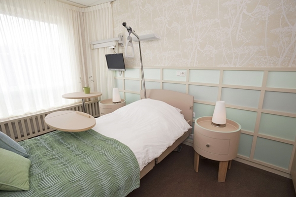 Op de afdeling palliatieve zorg staan een aantal meubels bekleed met Desktop, ontworpen door architect Sechmet Bötger,