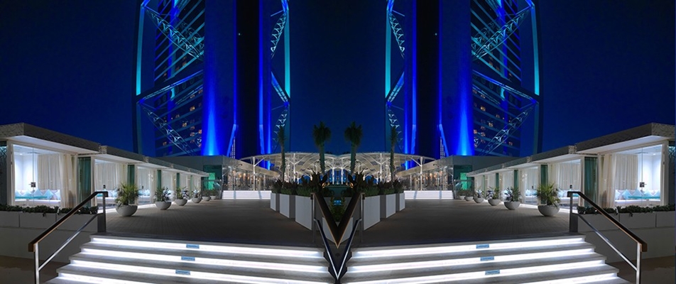 LED strips op verschillende plekken (binnen en buiten) in het Burj Al Arab Terras geĂ¯nstalleerd.